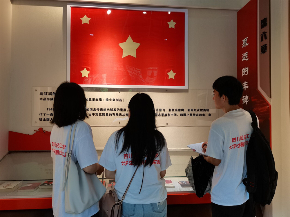 烈士事迹撼天地。队员们参观江姐革命事迹展馆、生活卧室等还原场景,认真聆听讲解,通过参观学习,不仅了解了江姐可歌可泣的革命人生,还深受江竹筠烈士追求进步、顽强战斗的大无畏革命精神的感染与教育。故居集中展示了江姐及家人使用过的物品,用文字和图片的方式展示了江姐的革命事迹,立体地展现了江姐短暂而辉煌的一生。参观结束后,社会实践小分队在江姐雕像前合影,并重温了入党誓词。