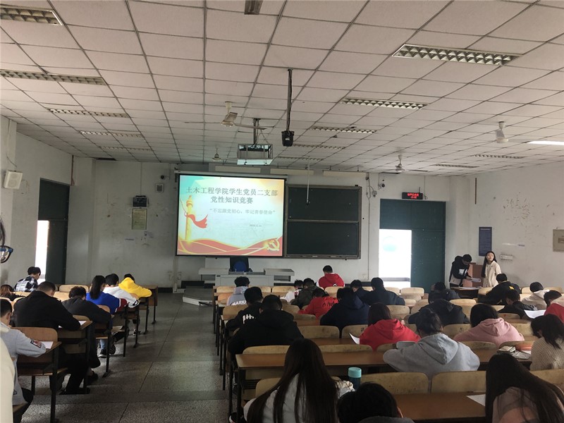 2019年11月11日13:00,土木工程学院学生党员二支部于厚德楼304教室开展了以“不忘跟党初心,牢记青春使命’为主题的党性知识竞赛活动。土木工程学院学生党员二支部全体学生党员以及积极分子参加了本次活动。