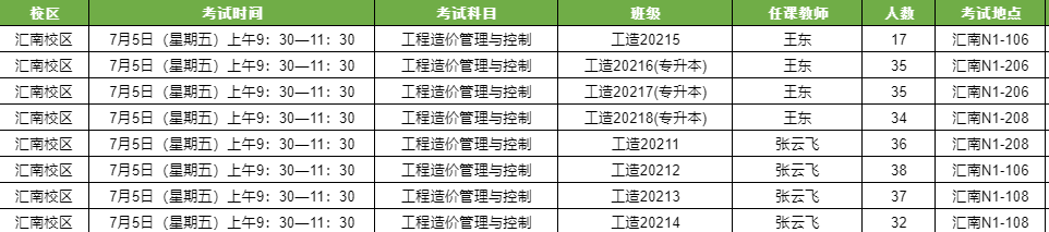 王东、张云飞老师《工程造价管理与控制》考试安排