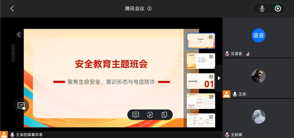 意识形态教育是本次班会的重点内容。班长们引导同学们树立正确的价值观和政治观,强调在信息爆炸的时代,要提高辨别是非的能力,警惕不良思想的侵蚀。通过分析一些国内外意识形态领域的斗争案例,让同学们明白维护国家意识形态安全的重要性,鼓励大家在网络环境中保持理性,不随意传播未经证实的信息,积极弘扬正能量。班长们还结合专业的特点,详细介绍了各类潜在的安全风险及应对措施,涵盖了校园日常安全,如消防安全、实验室安全等,通过展示一些因忽视安全规定而导致的事故案例视频,让同学们深刻认识到生命安全无小事,任何一个细微的疏忽都可能引发严重后果,并讲解了紧急情况下的自救互救技巧。班长们还提醒同学们要学会识别情绪变化,进行压力管理,遇到问题及时寻求专业帮助。班长们通过让同学们观看最新反诈视频识别常见的电信诈骗手段,如网络刷单诈骗、冒充公检法诈骗、贷款诈骗等。他们详细讲解了如何识别诈骗信息,提醒同学们务必保护好个人信息,不轻易向陌生人转账汇款。同时,还介绍了一些如“国家反诈中心” APP 等防诈工具的使用方法,增强同学们的防诈能力。