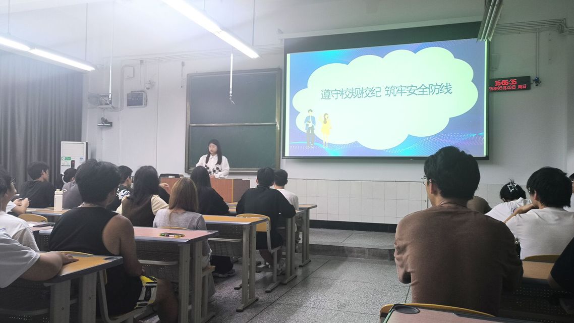 2025年9月28日下午,土木工程学院2024级全体学生在厚德楼110教室参加了遵守校规校纪,筑牢安全防线的主题班会。