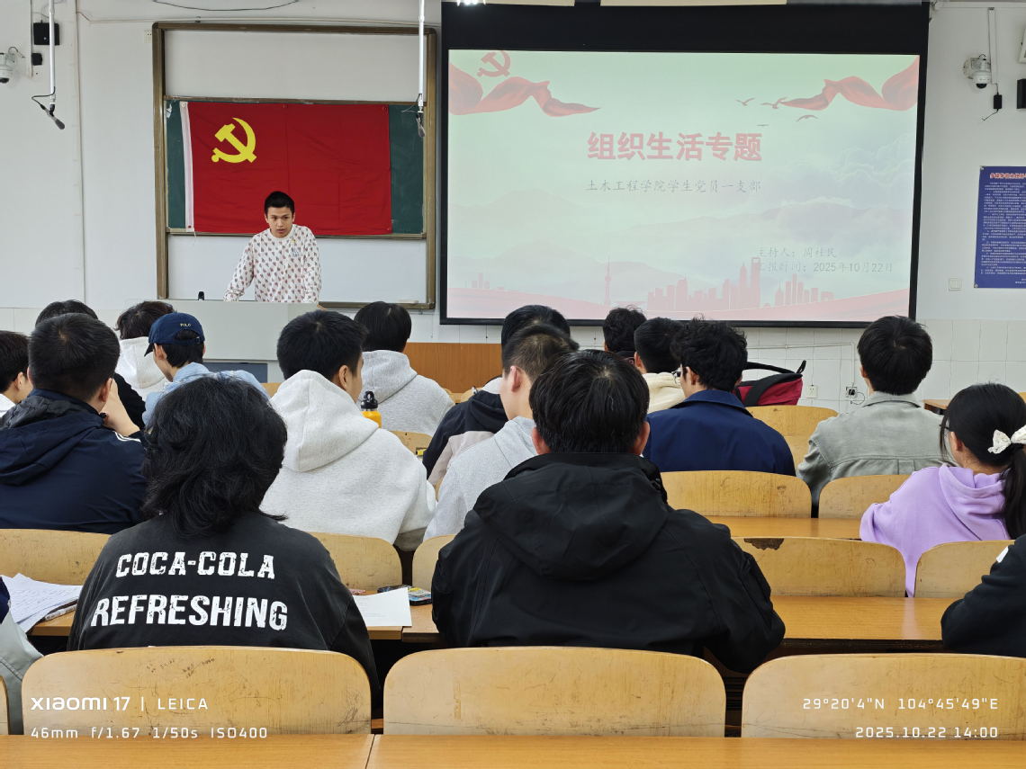 2025年10月22日下午,土木工程学院学生第一党支部十月党组织生活会在汇东校区厚德楼312召开。 党支部全体党员、 预备党员及发展对象参加会议,会议由党支部书记李枫玉同志主持。