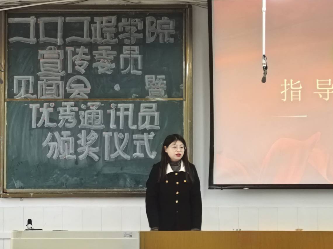 活动在庄严的团歌声中拉开帷幕。宣传部蒲虹宇介绍了部门职能与组织架构,明确了宣传委员在班级与学院宣传体系中的重要职责。宣传部吴祥枫展开了新闻稿培训,明确新闻稿写作各项要求。蒲虹宇介绍了优秀通讯员评定标准,希望宣传委员们以笔为媒传递学院声音,也期待更多同学加入通讯员队伍,共筑校园宣传新阵地。指导老师桂焱娥为土木工程学院2024-2025 学年获得“优秀通讯员”荣誉的同学进行了颁奖。