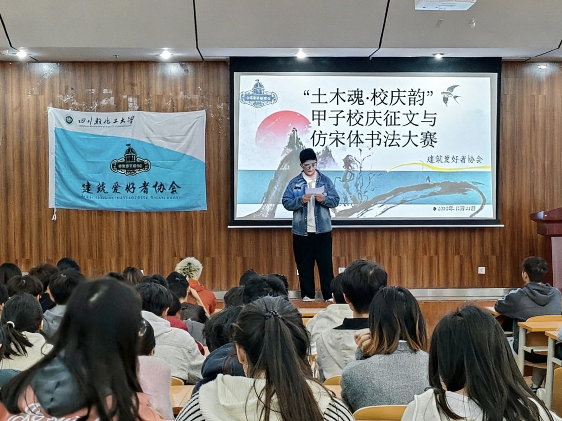 为弘扬中华优秀传统文化,传承汉字书写艺术,2025 年 10 月 22 日下午,四川轻化工大学建筑爱好者协会在汇东校区第四实验楼 214 室举办了第六届仿宋体书法大赛。