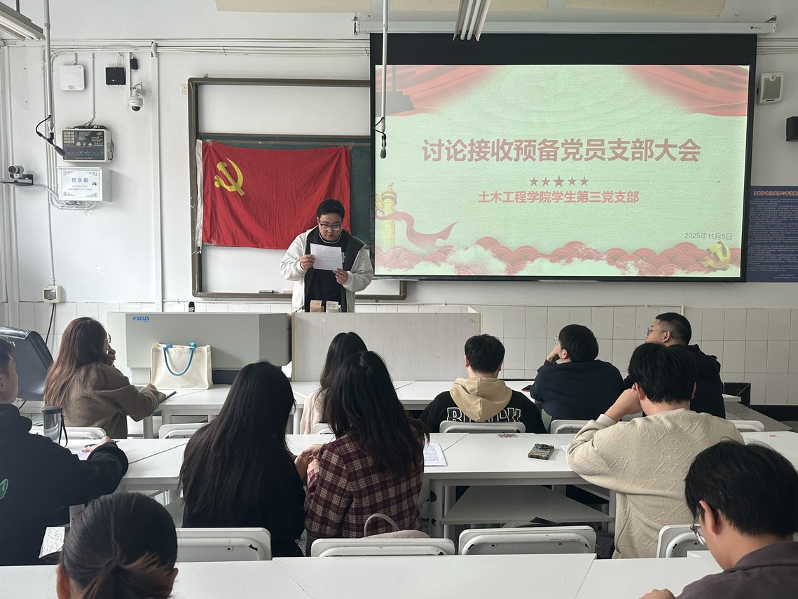 2025年11月5日中午,土木工程学院学生第三党支部在汇东校区厚德楼311教室召开接收预备党员支部大会,第三党支部全体党员参加此次会议,会议由党支部副书记胡林山主持。