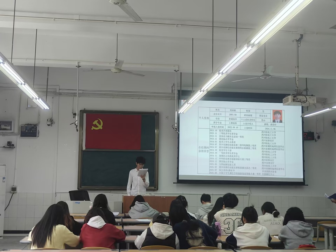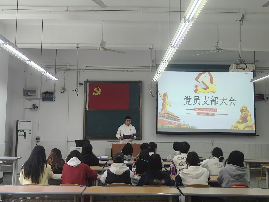 2025 年 11 月 7 日下午,土木工程学院学生第四党支部在汇东校区厚德楼 113 教室召开预备党员转正大会。支部书记白宇同志、本支部全体党员参会,会议由支部副书记周茹亿同志主持。