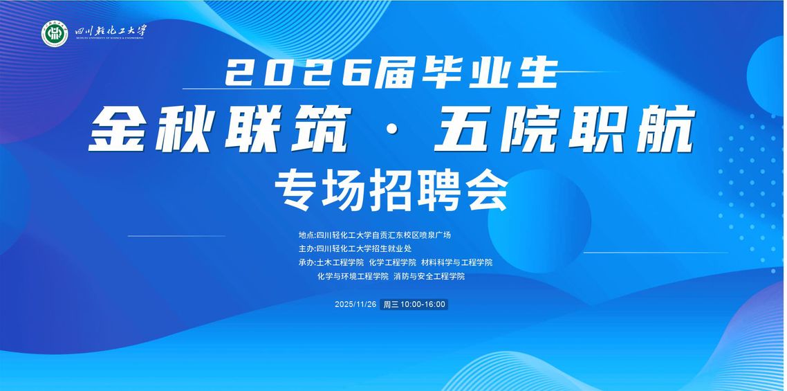 2025年11月26日,四川轻化工大学在汇东校区喷泉广场成功举办2026届“金秋联筑·五院职航”专场招聘会。本次活动由学校招生就业处主办,土木工程学院、化学工程学院、材料科学与工程学院、化学与环境工程学院、消防与安全工程学院联合承办,聚焦五院专业特色与市场需求,为毕业生搭建精准高效的求职平台。