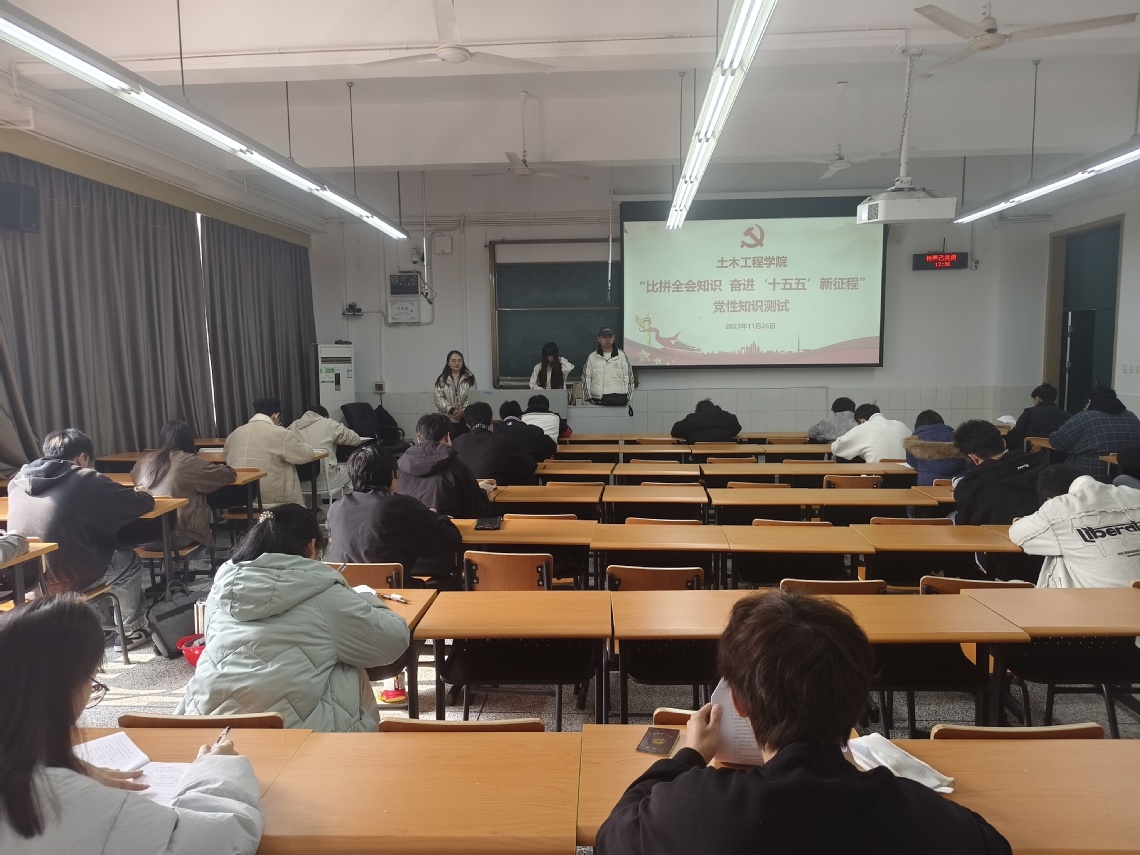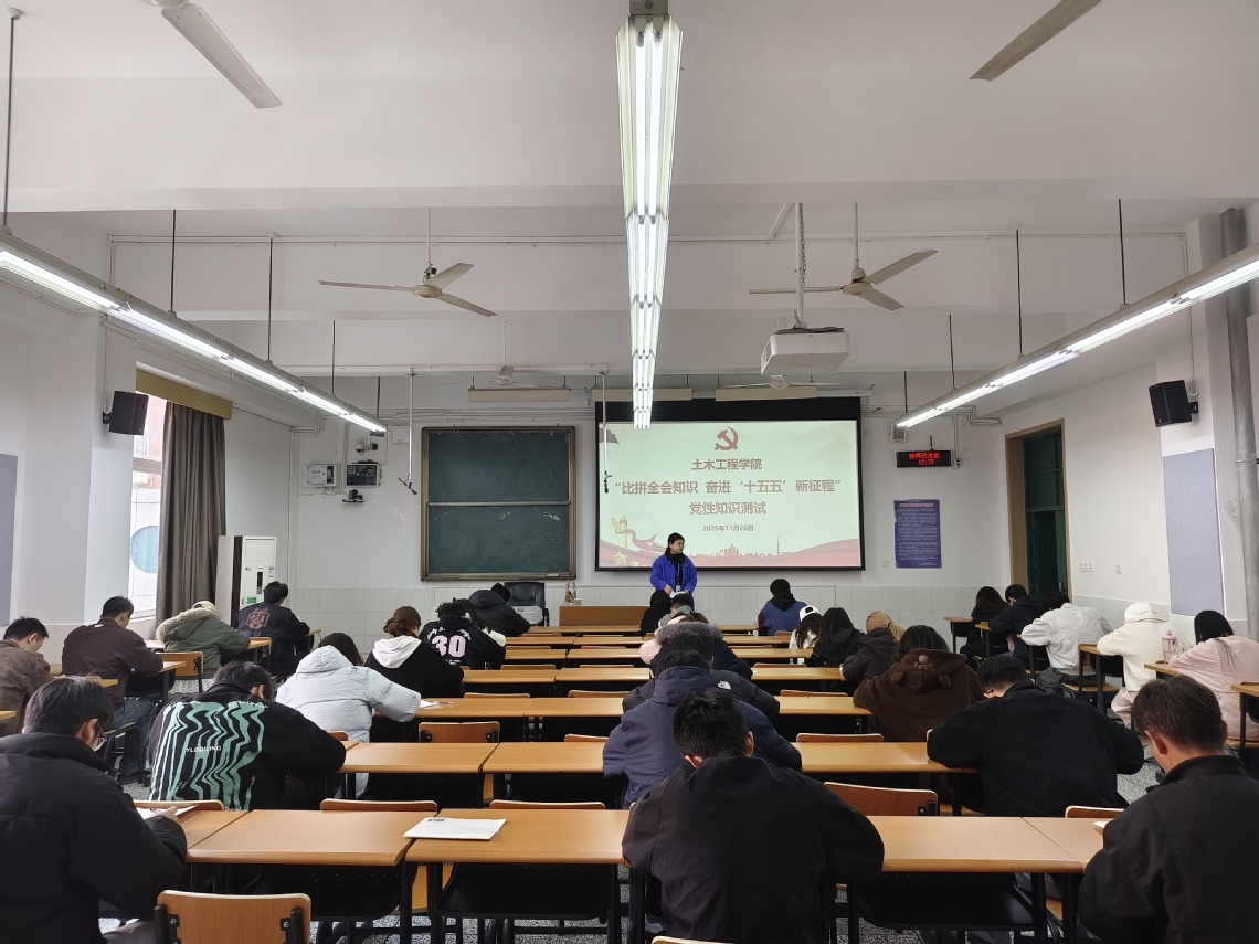2025年11月26日中午,土木工程学院党委在厚德楼310、317、319、321教室组织开展“比拼全会知识 奋进‘十五五’新征程”党性知识测试,全体学生党支部入党积极分子参加。