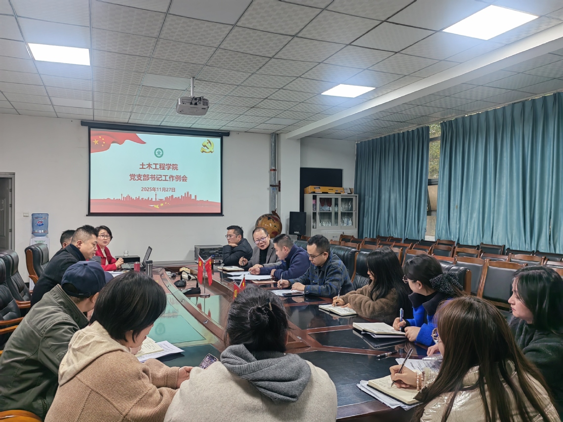 为夯实党建工作基础、提升党支部建设质量,2025年11月27日,土木工程学院召开党支部书记工作例会,研究部署党建相关工作。学院党委书记朱德珍、党委委员、组织员及各党支部书记参加会议,会议由朱德珍主持。