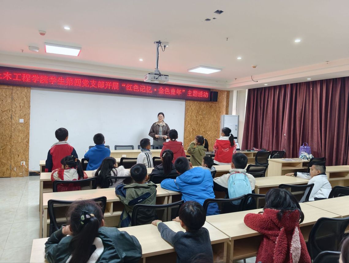 为深化校地共建合作,在少年儿童心中厚植爱党爱国情怀、根植红色基因,同时引导大学生党员强化宗旨意识、践行初心使命,2025年11月29日下午2 时,四川轻化工大学土木工程学院学生第四党支部联合自贡市贡井区胜利路社区,共同开展“红色记忆・金色童年”大学生党员亲子公益课堂活动。活动在胜利路社区会议室举行,由该支部党员周茹亿主持,支部7名党员和20余名社区儿童参加。