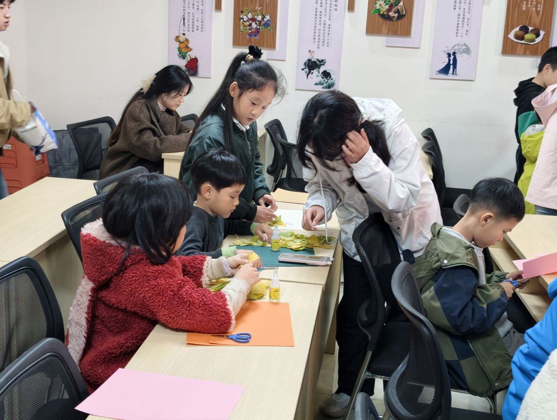 活动伊始,两名大学生党员生动讲述了红色经典故事。他们声情并茂的讲述,让孩子们仿佛置身于峥嵘岁月,革命先辈的光辉事迹在孩子们心中播撒下红色的种子。在轻松愉快的游戏环节,小朋友们热情参与“我是小小兵”小游戏和红色知识问答。现场围绕“雷锋同志的主要事迹”“红军长征的关键节点”等问题展开互动,孩子们认真倾听、踊跃举手抢答,凭借对红色知识的熟悉赢得了小纪念品,现场气氛热烈。在落叶拼贴环节,孩子们在大学生党员的陪伴和引导下,纷纷拿起剪刀,将自己对红色文化的理解与敬仰倾注于落叶之中,化作一幅幅充满童真的绚丽图画。孩子们有的拼画出革命英雄的光辉形象,有的剪贴出心中对祖国未来的美好憧憬,他们在创作中进一步加深了对红色文化的认知。