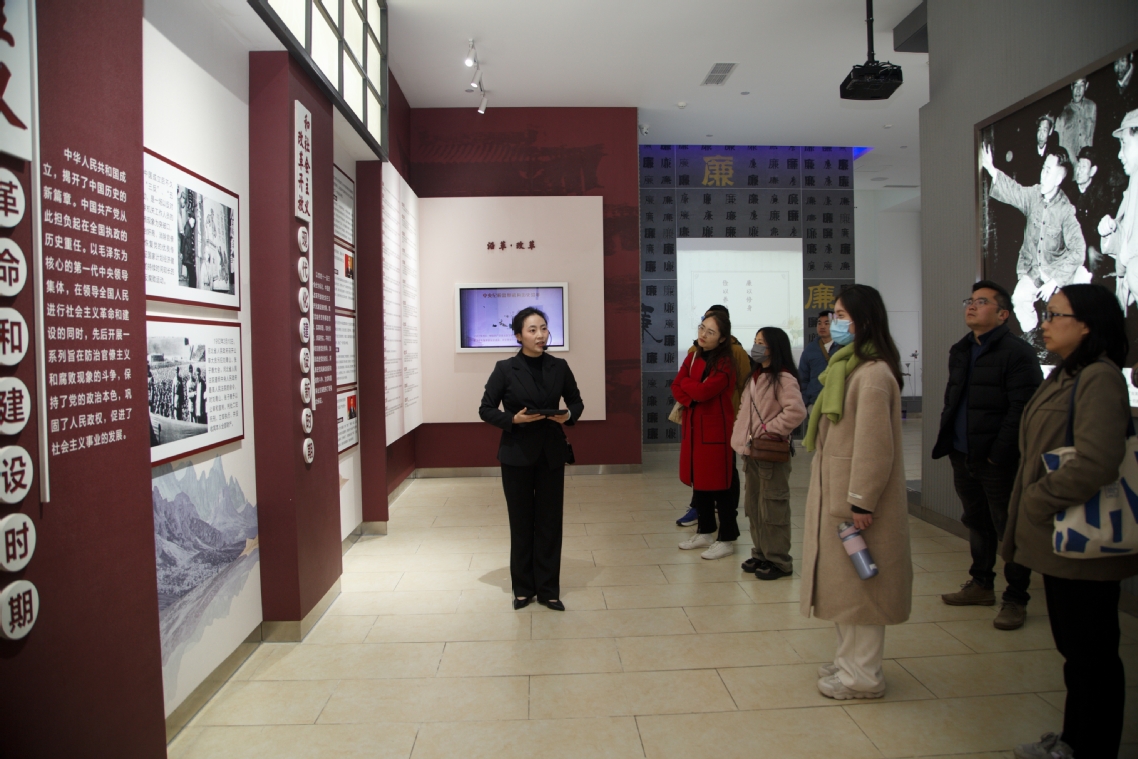 进入主展区后,党员们沿着“初心引路、警惕歧路、走稳正路”的脉络进行参观。在“初心引路”展厅内,大家通过图文资料和多媒体展示,回顾了党的反腐历程以及党的十八大以来全面从严治党取得的显著成效。当看到“忆甜续廉”版块播放的内江制糖工艺视频时,党员们结合自身专业感慨道:“制糖提纯的过程就如同党员修身,我们一定要以这种精神培育优秀的土木人才。”