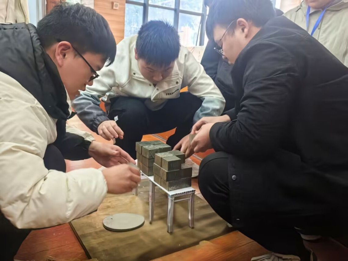 比赛过程中,各参赛队伍分工明确、配合默契。队员们系统阐述设计理念、结构特点与创新亮点,并在承重测试环节全神贯注、细致操作,平稳放置砝码,密切关注结构变化,准确记录各项数据,充分体现出扎实的专业基础、较强的动手能力和良好的团队素养。评委团从设计解说、结构合理性、外观创新性、承载稳定性及团队协作等多方面对作品进行综合评价,全面考察学生的专业知识运用能力、创新思维水平和实践协作精神。最终,文新君等4个小组凭借优异的表现斩获一等奖,胡张安洁等8个小组荣获二等奖,龙皓等10个小组获得三等奖。