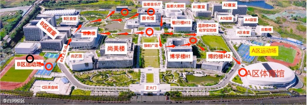 比赛点位:B区田径运动场、游泳馆、B区篮球场、盐都音乐厅、江姐雕像、图书馆、黄岭湖。