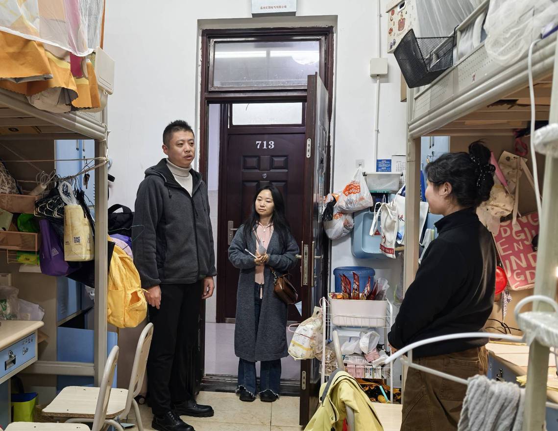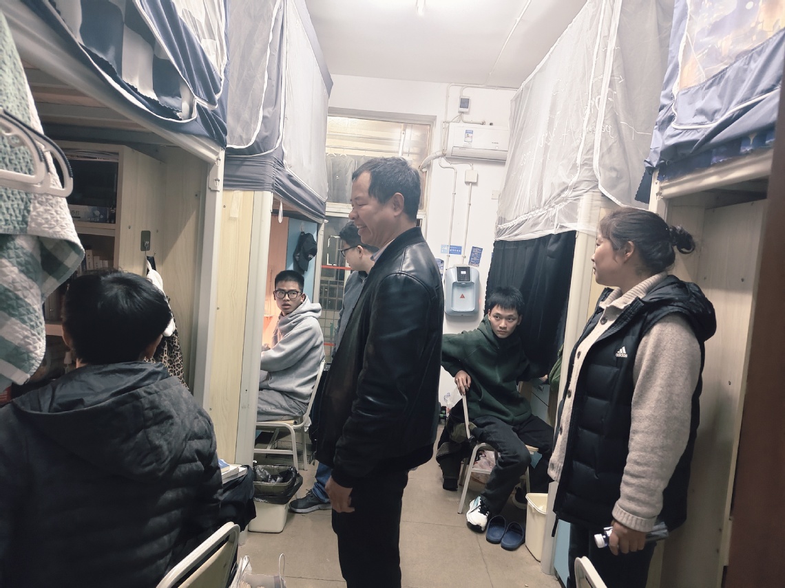 走访过程中,老师们认真倾听同学们在学习生活、宿舍设施等方面的意见和建议,并依据各年级学生的成长特点精准施策,开展针对性指导。对于大一新生,重点围绕行为习惯养成和宿舍安全规范展开,询问他们的返校适应情况,叮嘱他们迅速切换学习模式、养成良好的内务习惯,同时排查用电、消防等安全隐患,普及安全知识,引导新生扣好大学生活的“第一粒扣子”。对于大二学生,着重聚焦学业发展和宿舍卫生环境,了解他们的课程学习进度,鼓励他们夯实专业基础、积极参与学科竞赛和实践活动,倡导大家互帮互助,共同打造干净文明的住宿环境。对于大三学生,围绕就业准备开展指导,结合专业特点解读行业趋势与就业形势,指导他们明确目标、储备技能、完善简历,为就业季做好充分准备。对于毕业生,重点关注就业落实和毕业设计进展情况,询问签约、考研复试进展,解答求职困惑,叮嘱他们严守毕业设计要求与学术规范,高质量完成学业工作,珍惜校园时光。同学们纷纷表示,将不负学院的关怀,迅速调整状态,以昂扬的姿态投入到新学期的学习生活中。