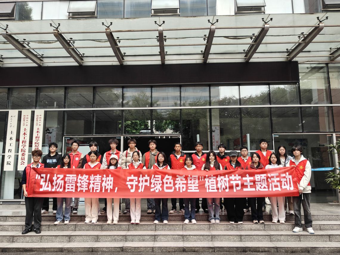为弘扬雷锋精神,增强学生环保意识,2026年3月12日,土木工程学院“筑梦者”志愿服务队在汇南校区第三实验楼开展“弘扬雷锋精神,守护绿色希望”主题志愿服务活动。