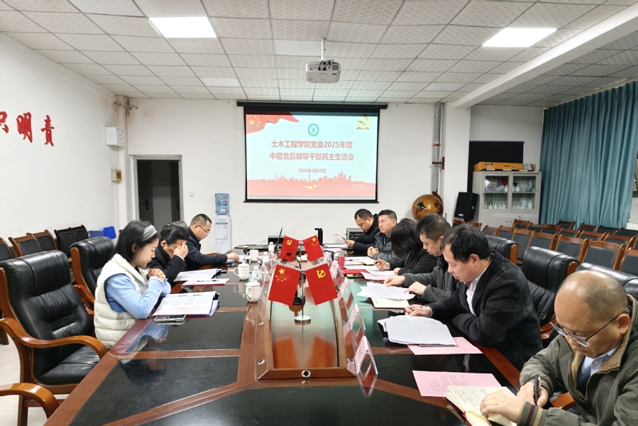 2026年3月19日下午,土木工程学院党委在汇东校区第三实验楼2单元302会议室召开2025年度中层党员领导干部民主生活会。学校党委常委、副校长高小林出席会议并讲话,学校党委督导组组长、党委巡察工作领导小组成员、党委巡察办主任刘丰荣,纪委纪检监察室干部、督导组成员何雪霁列席指导。学院党委书记朱德珍主持会议,学院党委委员参会。