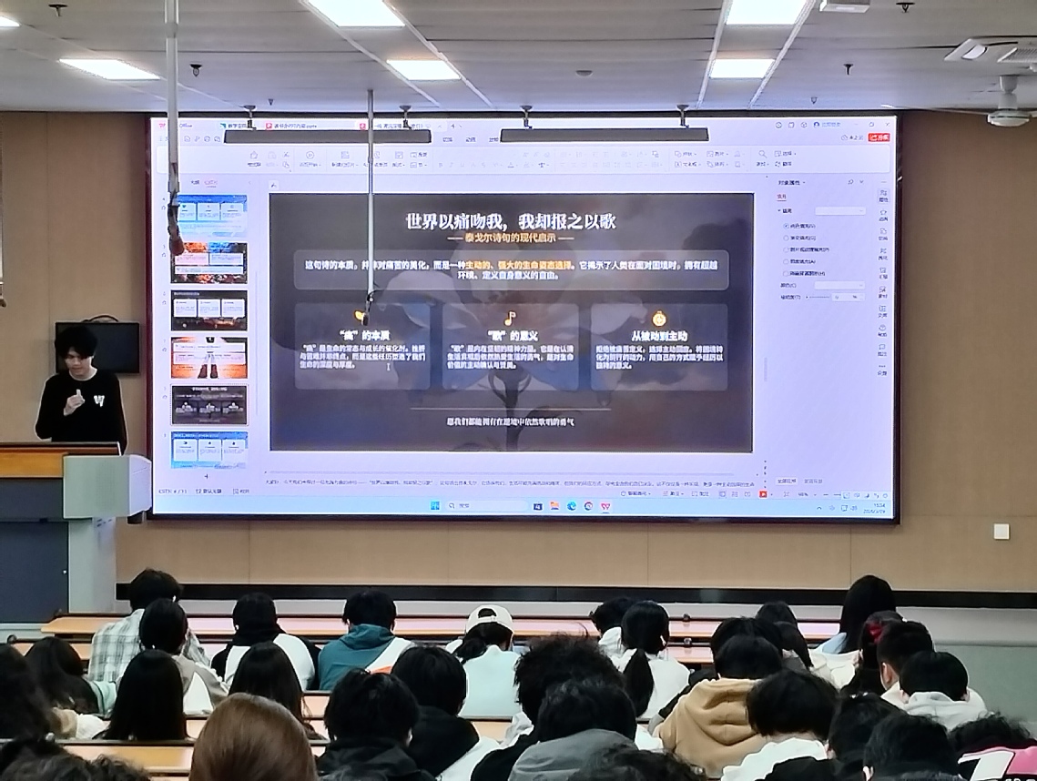 活动现场,同学们依次登台分享不同领域的优秀作品,内容涵盖前沿科技论文与经典散文随笔,充分展现出跨领域学习的广阔视野与深刻思考。分享者结合作品创作背景、核心主旨畅谈个人感悟,通过直观的作品展示与生动的现场讲述,带领在场听众徜徉于文字与知识构筑的精神世界,引导大家实现从被动接收知识向主动思考探究的转变。
