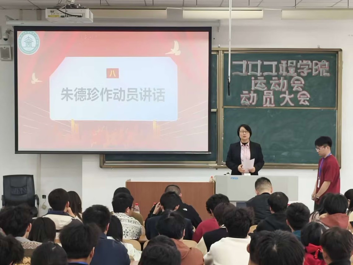 朱德珍在动员讲话中勉励全体运动员牢记院训,争做有责任、有担当的新时代青年;严守安全底线,坚持科学备赛;大力弘扬团队精神,以昂扬姿态奋勇拼搏、展现风采,全力为学院争取荣誉。