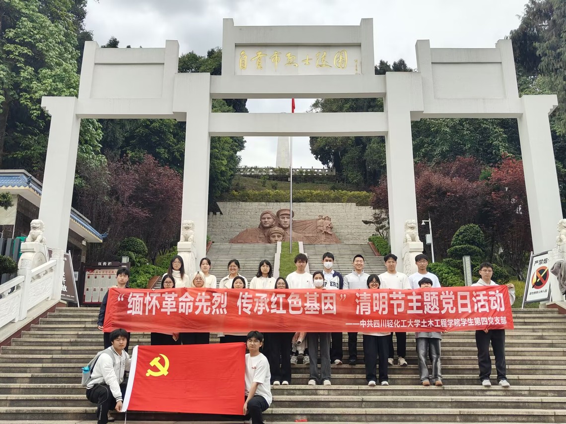 清明寄哀思,红色永传承。在4月1日清明节来临之际,土木工程学院学生第四党支部联合学院“筑梦者”志愿服务队,与自贡市烈士陵园共同开展“缅怀革命先烈 传承红色基因”清明节主题党日活动。13名学生党员、入党积极分子及志愿者代表参加活动,在沉浸式红色教育中赓续红色血脉、厚植爱国情怀,将立德树人根本任务融入实践教学。