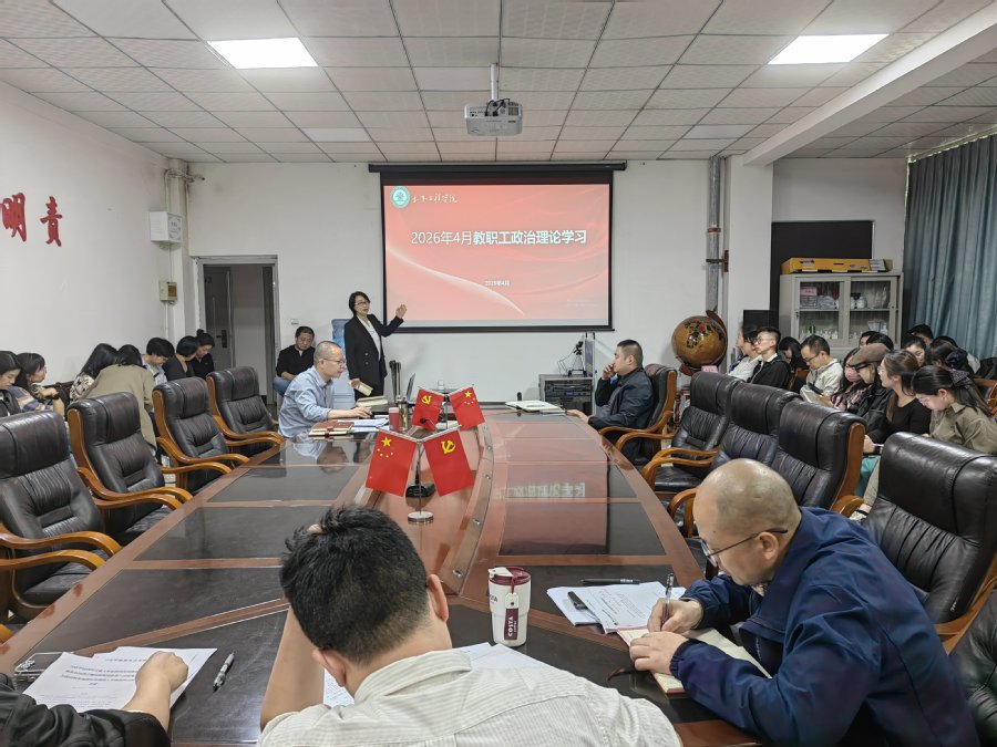 为持续强化理论武装、严守安全稳定底线、推动学院各项工作高质量发展,2026年4月22日下午,土木工程学院在汇东校区第三实验楼302会议室召开4月教职工政治理论学习暨全体教职工大会,由学院党委书记朱德珍主持会议,全体教职工参会。