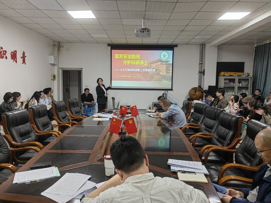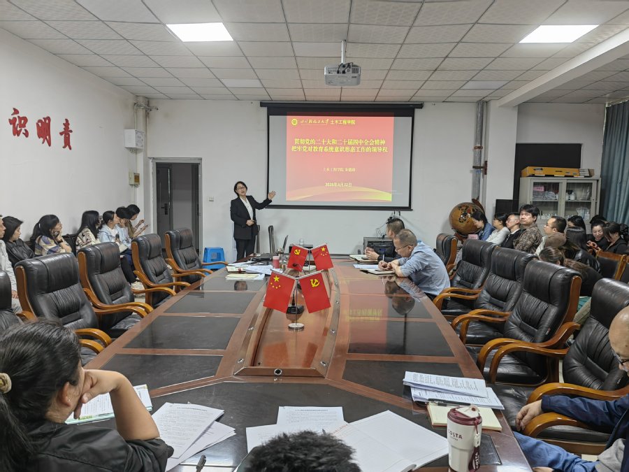 紧接着开展了系列专题学习。党政办主任骆锐组织观看保密教育视频并领学《科学技术保密规定》;市政工程系主任唐恒军领学《中华人民共和国保守国家秘密法》及其实施条例,进一步压实科研、教学、管理全流程保密责任。与会人员一道集中观看了警示教育片,该片聚焦高校教师科研经费使用不规范、违规发放津补贴、学术不端等典型案例,以案明纪、以案示警。朱德珍以“筑牢安全防线 守护科研净土”为题讲授保密工作专题党课,分析了当前高校保密工作的现状及严峻形势,解读了国家秘密与保密工作常识,分享了多个高校失泄密案例及启示。随后,她还做了题为“贯彻党的二十大和二十届四中全会精神 把牢党对教育系统意识形态工作的领导权”的意识形态工作专题党课,带领全体教职工深入学习意识形态工作相关内容,强调全面落实意识形态工作责任制的重要性,牢牢掌握意识形态工作领导权。
