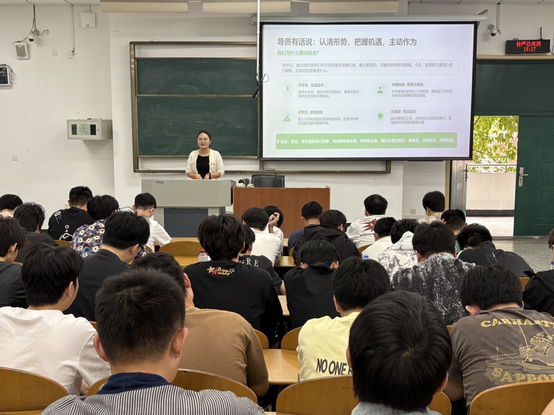 会上,李琴结合第11个全民国家安全教育日,并通过“随手拍”“网络交友”等典型案例,警示同学们警惕身边安全隐患,自觉争做国家安全的忠诚守护者。针对毕业季关键节点,李琴以“为何要就业”为切入点,深刻阐明就业不仅关乎个人成长,更牵动家庭与社会发展,并呼吁同学们转变就业观念,从“要我就业”转向“我要就业”。她还引导同学们树立“先就业、再择业”的务实态度,并要求同学们每日关注招聘资讯、主动投递简历、积极参与校招活动,坚决拒绝“躺平”心态。