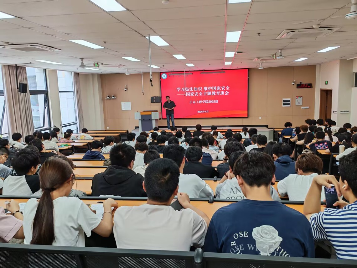 为弘扬宪法精神,普及法治知识,2026年4月23日,2025级土木工程专业全体同学在李白河校区H1-113教室召开“学习宪法知识,维护国家安全”主题教育班会,班会由辅导员毕超主持。