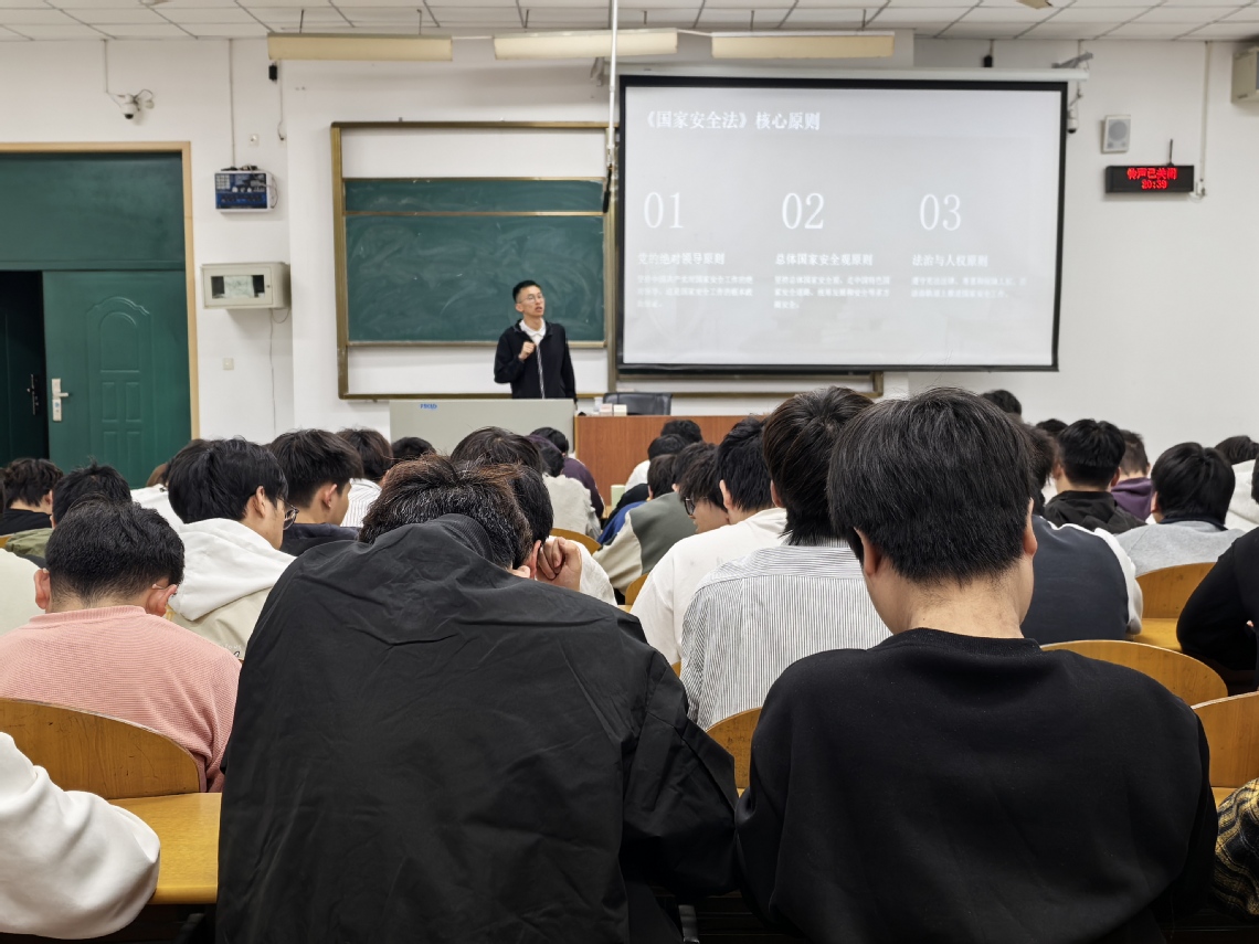 会上,郑尚中结合全民国家安全教育日的相关要求,引导同学们深刻认识到,国家安全是国家生存发展的根本前提,更是人民幸福安康的重要保障。他还系统阐释了总体国家安全观的核心要义与覆盖领域,重点解读了宪法中关于国家安全的相关条款,明确了公民维护国家安全的法定义务,并向学生普及《国家安全法》核心内容。在互动环节中,知识问答、情景模拟等丰富形式充分调动了学生的参与积极性,引导学生主动思考、积极发言,进一步强化了自身的安全防范意识与应急处置能力。