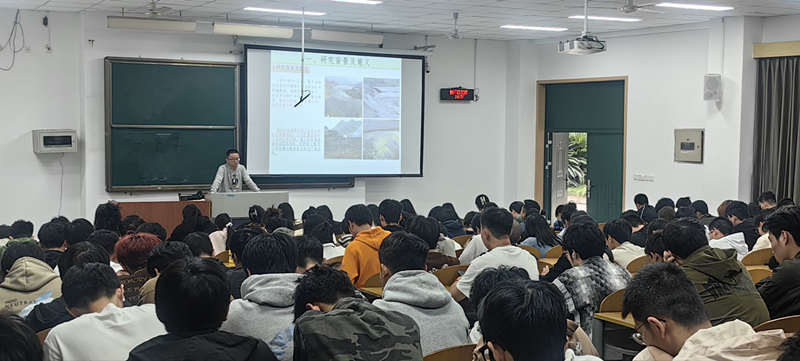 此次讲座题目为《碱激发高钛矿渣基阻隔材料研发及对Cd2+的阻滞机理研究》,何逵老师结合自身科研经历和实践经验向同学们讲述了关于地下水污染防治相关理论知识,从地下水污染现状问题到阻隔材料研发与对Cd2+的阻滞机理研究进行了详细介绍。汇报后的问答环节,同学们就讲座中内容及本专业知识向何逵老师提问,通过交流进一步加深了对地下水污染防治问题的理解与思考。